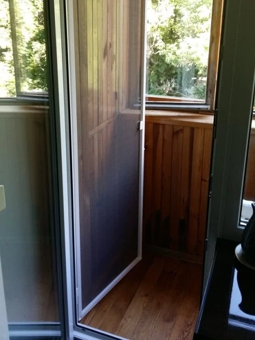 Используется для дверных проемов, имеет вид оконной сетки из достаточно мощного профиля. Такая сетка открывается в сторону, противоположную основной двери.